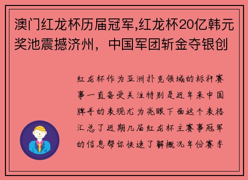 红龙扑克伙牌、红龙扑克赛事奖金揭秘:百万奖池背后的冠军荣耀与财富分配